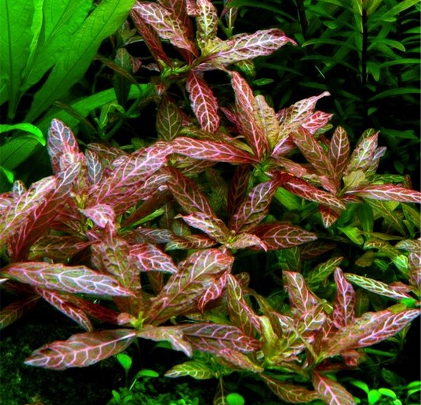 ‘Sunset’ is an easy stem plant with pink to red hues and smaller leaves ideal for nano aquariums. Iron fertilization enhances its vibrant coloring.