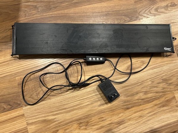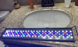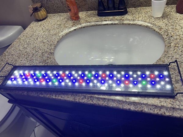 You are bidding on this LED light that has a timer, 24/7 Light Cycle and you can also choose different colors as well.  It is great for a planted tank as well.  It is 22" wide however it has adjustable mounting legs for tanks that are 22-24" wide.