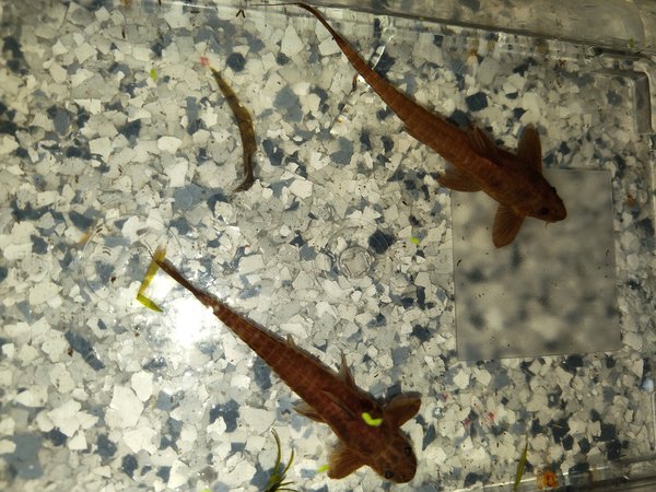 They spawn in a 1" pvc pipe that was open on both ends and the male guards the eggs. Despite having sucker-mouths, these fish are largely carnivorous; they eat pellets, frozen food, or flake food once it sinks down to where they can get it.