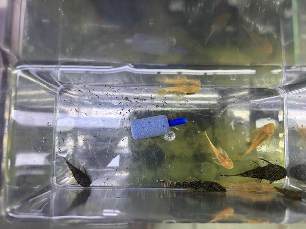 Fish being auctioned are 3 albino and 3 common brown bristlenose plecos. These plecos were spawned from a pair of common brown BN plecos that will spawn a mix of albino and brown pleco fry.