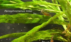 I feed the adults bbs and black worms (which they love). My mistake on the first try was leaving all three adults in the tank once the fry left the cave. I saw several fry the first day, but shortly after it became apparent the the adults picked off the fry. On the second try, once I saw the hatchlings I removed all adults but the brooding male. I removed the male once the fry started to vacate the cave -- and that approach produced about a dozen fry. The fry are growing slowly, so what I have are over 2-month old, but some are yet to reach half an inch.