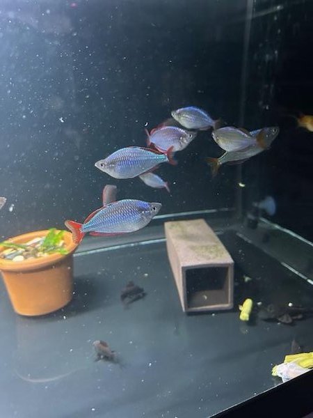 Breeding group of 10 Praecox rainbows. I suffer from running out of space in the fish room. My loss your gain.