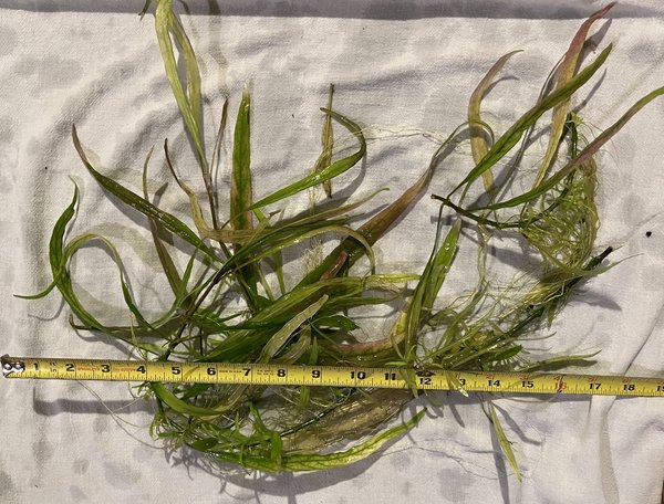 This is a bag of three stems of Hygrophila. They have been floating for a while, so there is a lot of roots and sprouts along each stem.