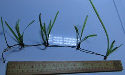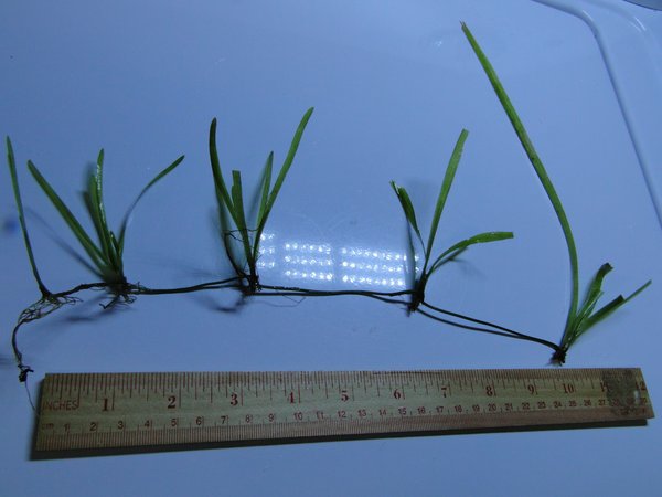 In a 55, as here, the leaves reach the top and will bend over and cover the surface if allowed. They get in excess of two feet and I don't know how much longer because I regularly have to cut them off at the surface so they don't shade the whole tank. You will receive the runner pictured with four young plants.