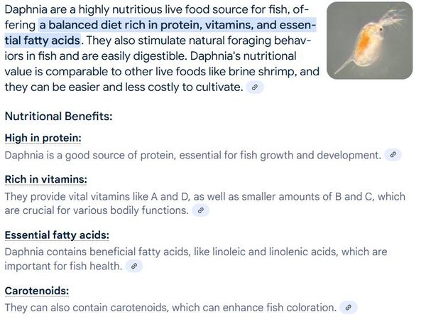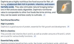 I feed my daphnia a mixture of 2 part dry active yeast with 1 part white sugar and warm water (mix very well).