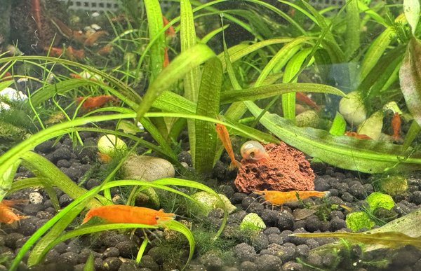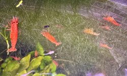 Assortment of orange shrimp with Sunkist to blood red coloration.