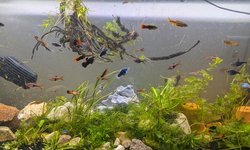 I bought this group from a previous MAS auction. Had a wonderful time breeding them, doing a rain cycle, increasing water levels and temp, triggering their complex breeding process. The fry are very sensitive and my inability to consistently feed the fry has made them not survive, but the group is very happy and healthy, breeds well when bred, and a very active, gorgeous school in my community.