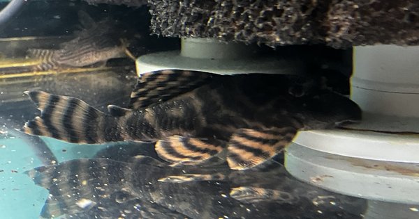 Panagolus sp. L-397 is a pleco with bold orange and black striping. It grows about 4" long. I keep this in a bare bottom 125 gallon tank where it breeds prolifically in pleco tubes. I've also spawned this in 40 Breeders, so the fish is not picky about a specific spawning habitat. The tank is kept at 82F with lots of aeration (wavemaker) and gets VibraBites, BugBites, algae wafers, occasionally frozen mysis, but mostly dry food. You will be getting a 1.25" - 1.5" fish.