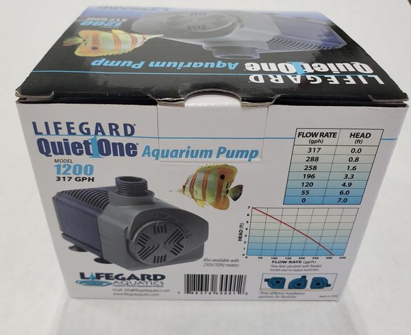 New-in-box Lifegard Quiet1One 1200 Aquarium Pump. Max flow rate 317 GPH/1200 LPH. For fresh and salt water.