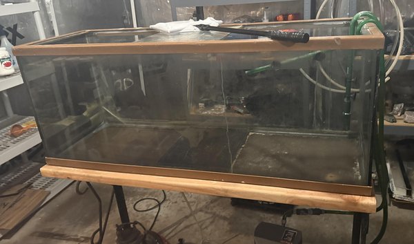 55 gallon aquarium. I used it last winter for storing koi inside. Went to refill it this year and has very small leak. New sealer will undoubtedly fix it. I decided to get a bigger tank.