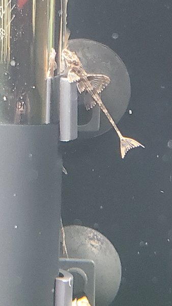Juvenile Whiptail catfish 1-2 inches long. Very peaceful addition to any tank. Grows up to be ~6 inches long with another 2