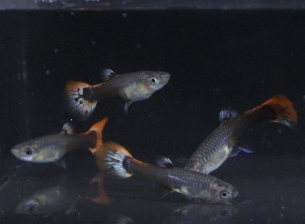 This lot is for 2 males and 2 females that come from my hybrid/crossbreeding of halfblack red rose tails and snow white guppies. These guppies should be very healthy relative to pure strains due to a mixed genetic background. I embedded a youtube video that details the start of this cross.