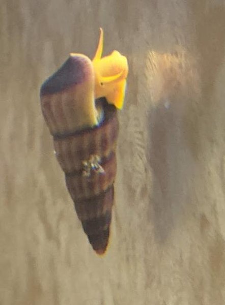 3 Orange rabbit snails that were born in my fish room. They're now roughly 1 inch in length and over a year old. They prefer warmer water (80 degrees) and also like a bit of mulm on the bottom.