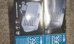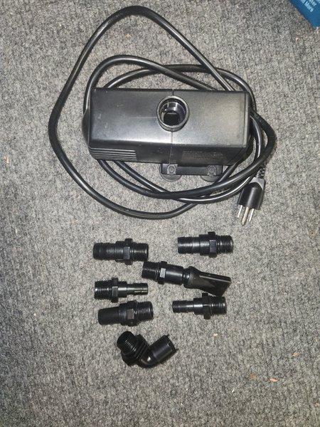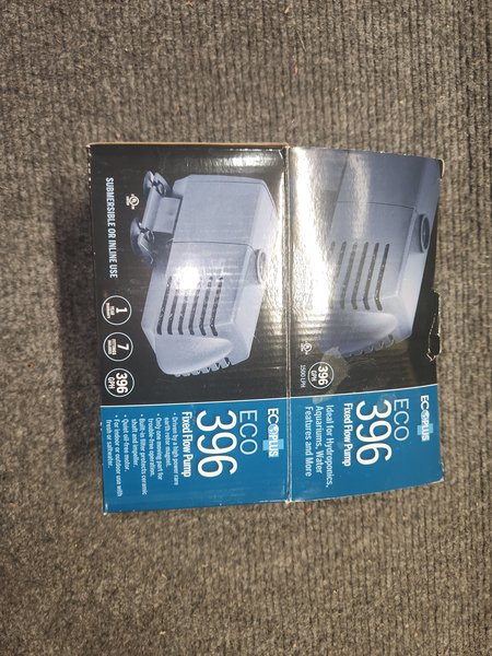 EcoPlus 396 GPH submersible / inline water pump, suitable for aquariums, sumps, water changes, or hydroponics use. Pump was previously used, powers on, quiet operation. Includes 10 or so feet of plastic tubing.