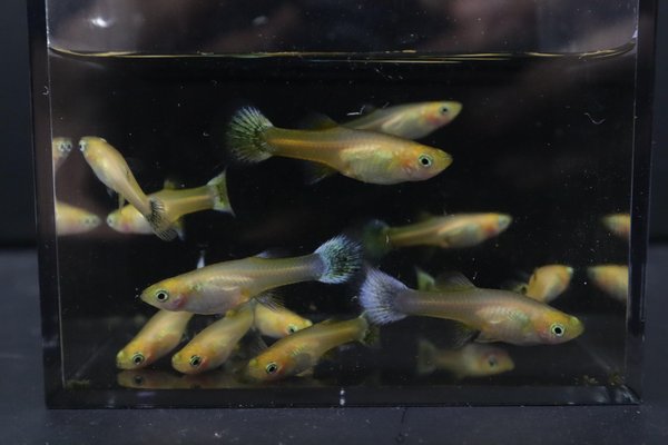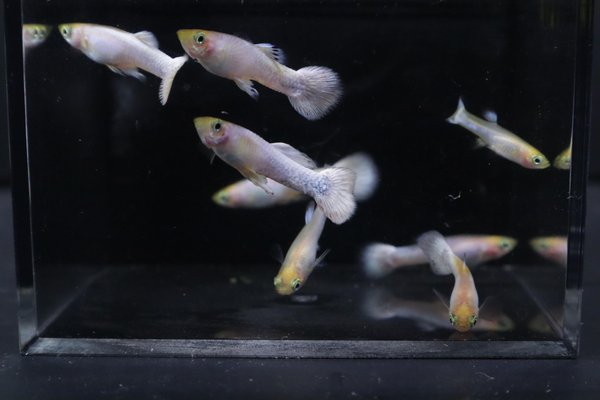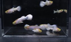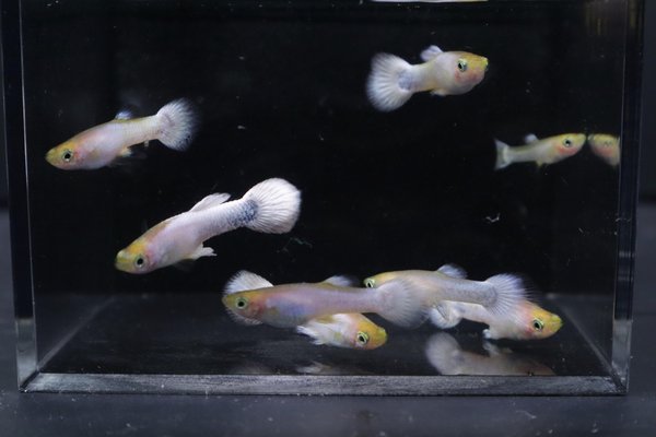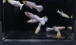This lot includes two pairs (2 males and 2 females) of Half-Black Snow White guppies. These are from a breeding project that is very close to breeding true. These specific pairs will produce both Half-Black Snow Whites and regular Snow Whites.