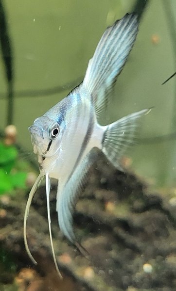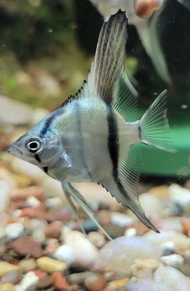 A lot of six Philippine Blue Hybrid Angelfish. Body size without fins will be dime to nickel.