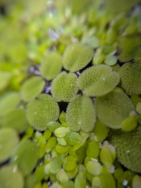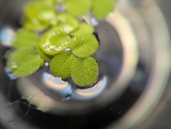 Possibly my favorite floating plant, this amazing addition to your tank has a beautiful layer of super-fine "hairs" on the top surface of its leaves. The purpose of these little hairs is to repel water in order to keep the top of the plant dry. The only downside of this plant, in my opinion, is that the roots it produces are only about a quarter inch long, so this is not a plant that will over top-dwelling fry a ton of cover.