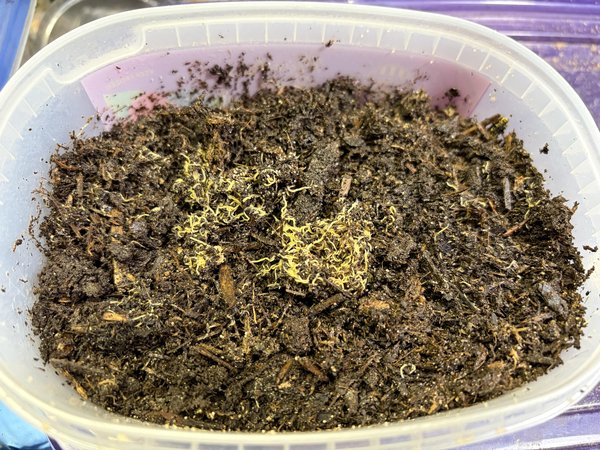 3 Cups worth of top soil substrate and white worms dispersed within.