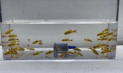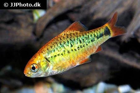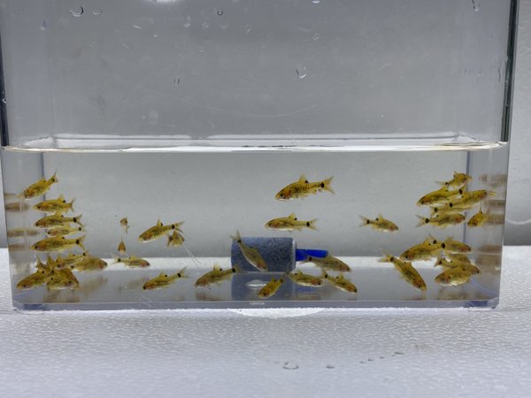 Fish being auctioned are 8 unsexed, ½” in size, and from a 11/25 spawn. The picture is of a group of the barbs that are in this auction.