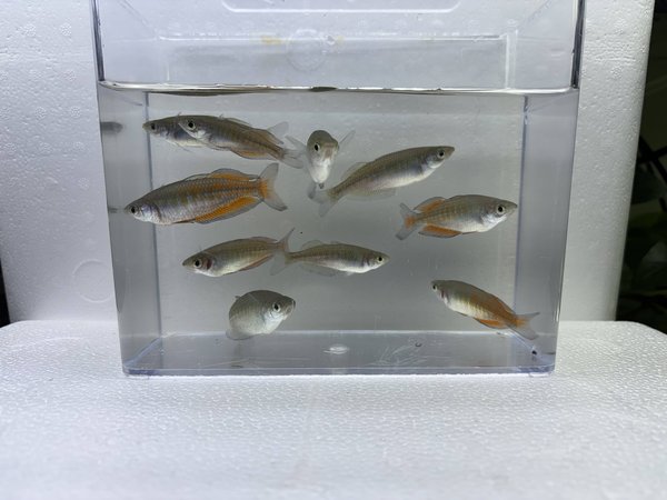 Fish being auctioned are 4 each that are 3-5” in size. I will provide 2 males and 2 females. The picture is of a group of the rainbowfish that are in this auction.