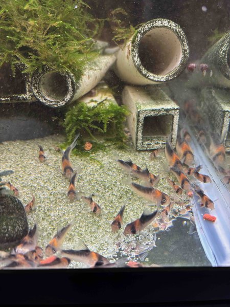 Fish being auctioned are 4 each, 1” in size, and from my Duplicareus corydora tank. The fish is colony bread in a 20 gallon tank that is heavily planted and has a pool filter sand substrate. Pictures are of a group of the juvenile cory with my colony of Duplicareus corydoras. The smaller fish in the picture are the corydoras that are being auctioned.