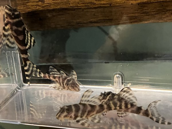 Beautiful pleco with bright striping. This fish is ~2" long and will grow to 4.5" at maturity. Raised on algae disc, VibraBites and BugBites. Peaceful, even among others of the same species.