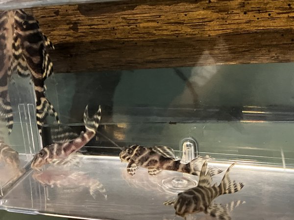 Beautiful pleco with bright striping. This fish is ~2" long and will grow to 4.5" at maturity. Raised on algae disc, VibraBites and BugBites. Peaceful, even among others of the same species.