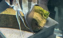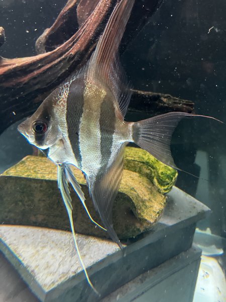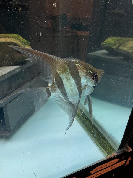 True altum angelfish. These will grow as much as 12" - 14" high. Have too many in my grow out tank, so some have to go.