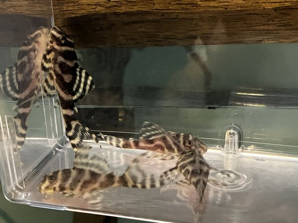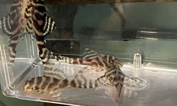 Beautiful pleco with bright striping. This fish is ~2" long and will grow to 4.5" at maturity. Raised on algae disc, VibraBites and BugBites. Peaceful, even among others of the same species.