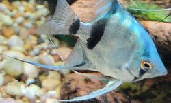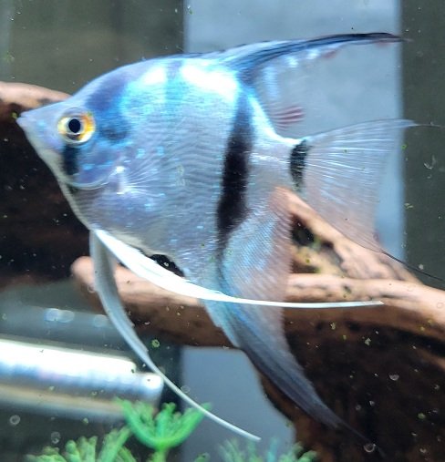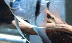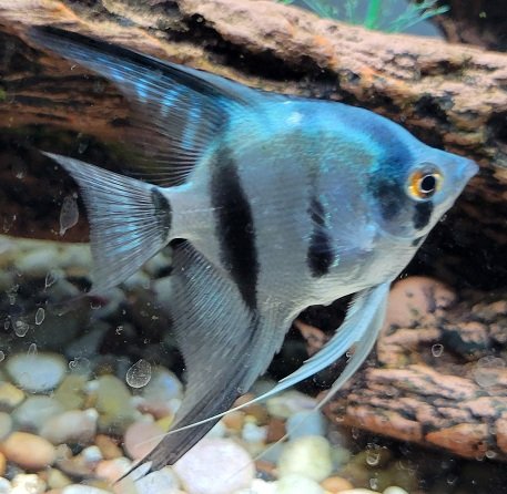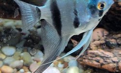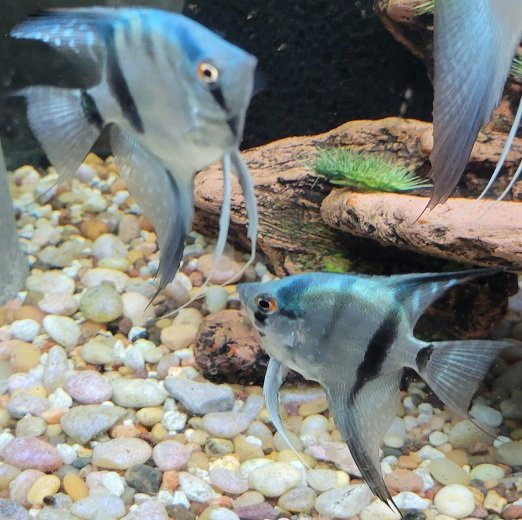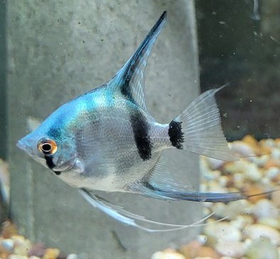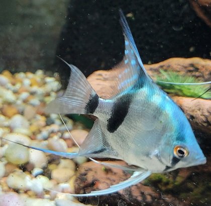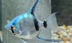 A lot of two colorful pre-breeder Philippine Blue Hybrid Angelfish. Body size without fins will be 50 cents range.