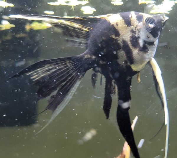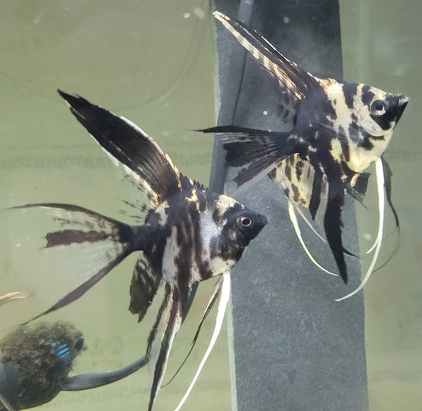 A lot of two Long Finned Gold Marble Angelfish. Body without fins is around a quarter plus in size.