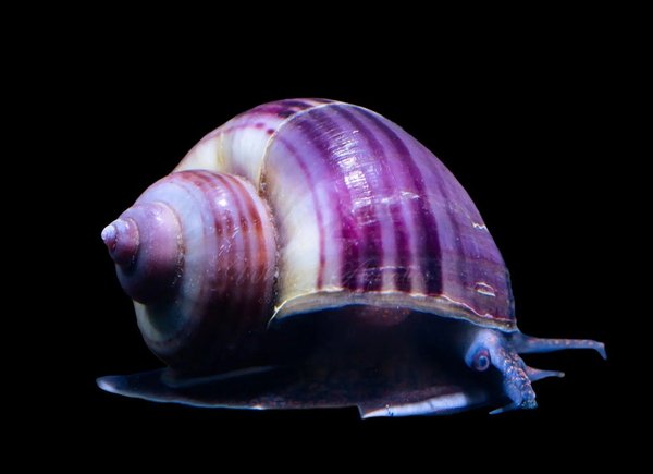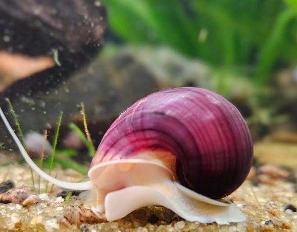 Two juvenile mystery snails one purple & one magenta. Rarest colors to get - Feed them well and their colors will stay vibrant!