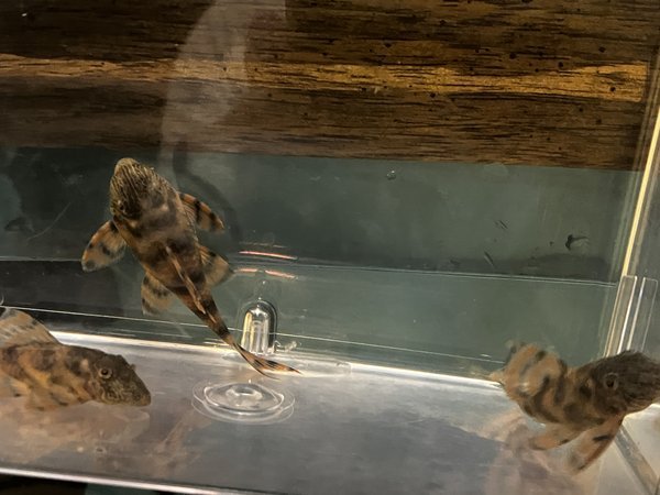 Easily bred Panagolus sp. plecostamus with red highlights in the tailfin. This fish is 1.5" - 2" long and will grow to 4.5" at full maturity. Fed with algae wafers, VibraBites and BugBites, although it'll thrive on a primarily vegetarian diet. Likes pleco caves and scraping the biofilm off driftwood. Last one in this auction.