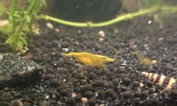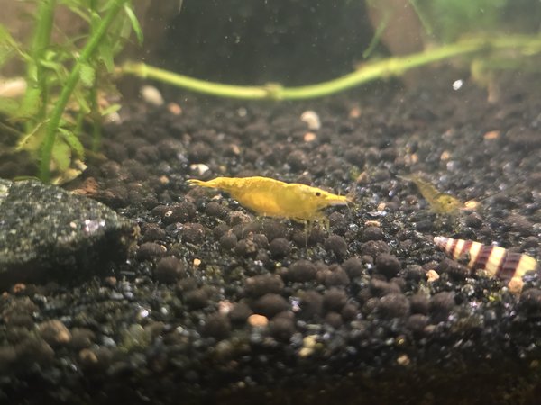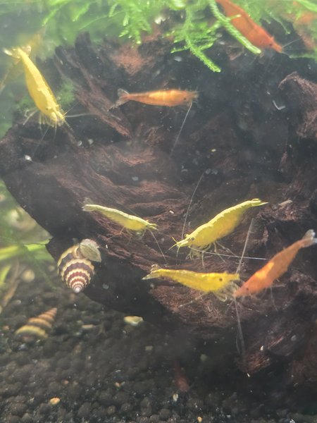 Lot is for 10 yellow Golden-back neocaridina shrimp. Some small, some large, females may be berried. Pictures are of my shrimp but who knows if you'll actually get those shrimp. I have like 700.