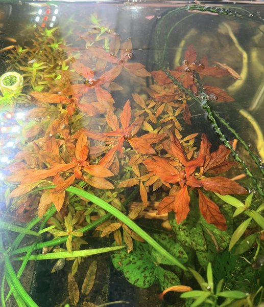 Ludwigia super red has small, round, pointed leaves that grow in opposite pairs along the whole length of the stem. The leaves can be green or red, depending on tank conditions. To get a bright red color, you must provide high lighting and nutrient levels.