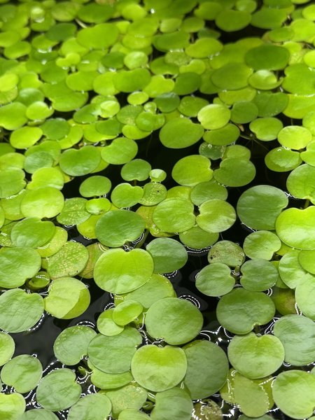 Large portion of frogbit. An excellent floating plant with hanging roots for fry to hide in.