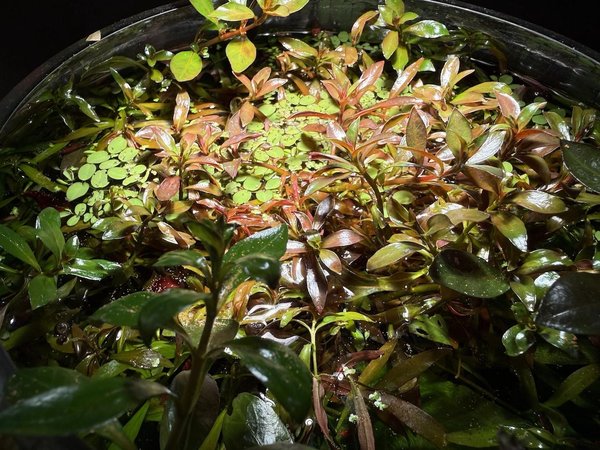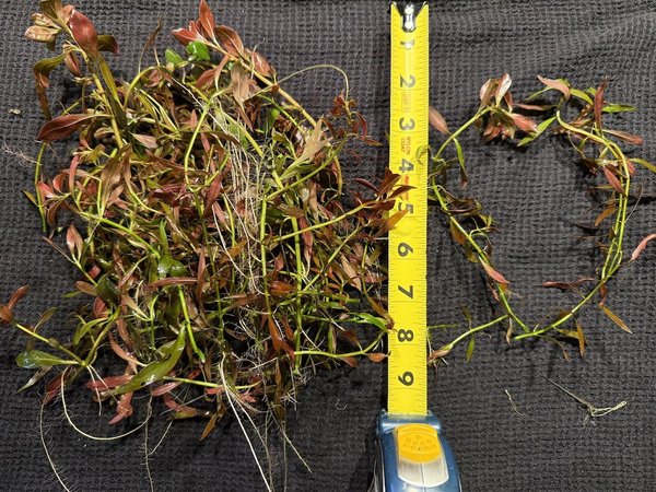 Immersed leaves are thin like Rotala; emersed leaves are shiny and much wider with a pointed tip.