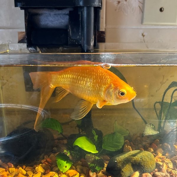 They report the fish is 4-5 inches in length. I believe it is healthy, this neighbor has kept healthy fish and tanks before, so it was likely not being massively mistreated, other than being in a tank about a quarter of the size it requires to thrive in.