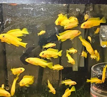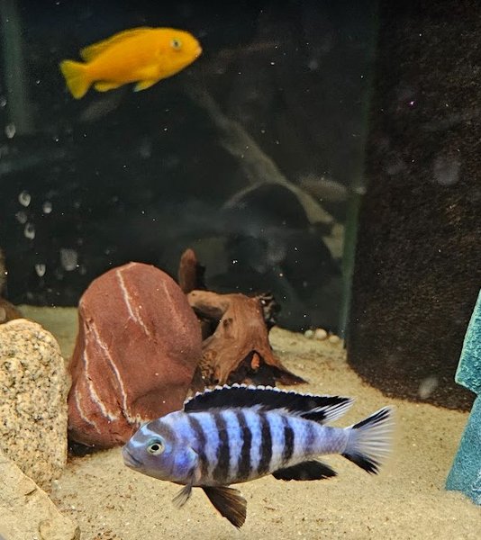 males and females are completely different colors, allowing you to have a vibrant blue and yellow tank using only one species