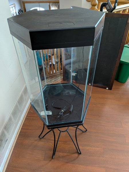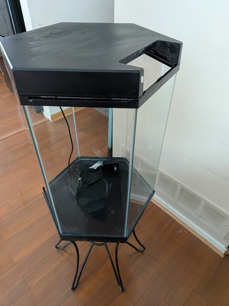 Great shape! No cracks, scratches, chips etc, holds water, and the light works, (surprisingly bright for one that's built into the lid!) heavy duty stand that comes with it!