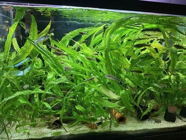 Nice crypt that grows very tall- the pics are of a 65 gal & a 37 gal tank- those are 23” & 20” tall respectively- these won’t fit in a 20