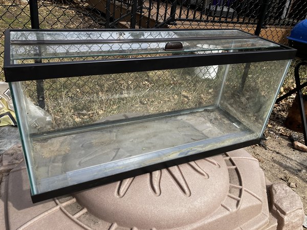Used tank in good condition. Glass top appears new, with plastic tabs for total coverage.