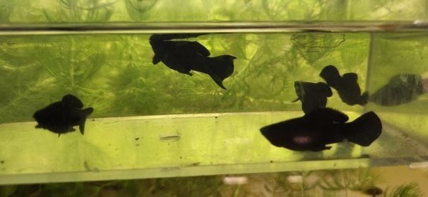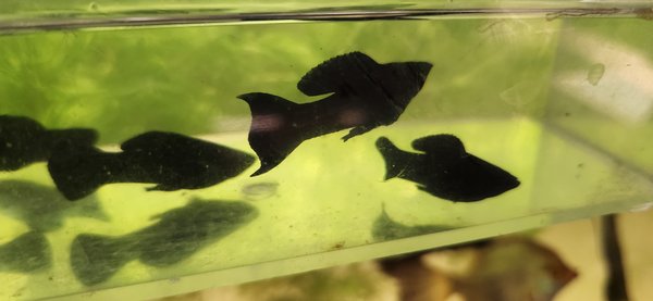 All males. Originally purchased as juveniles that were in a bag lot along with Electric Blue Mollies.