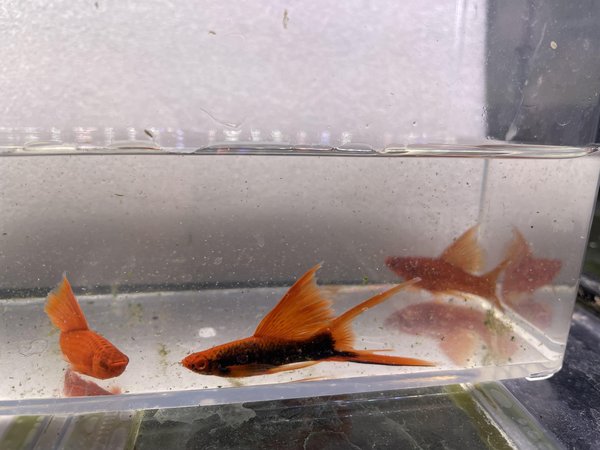 Mix of red and hamburg swordtails. Note that male lyretails cannot breed regularly, unless you use artificial insemination.