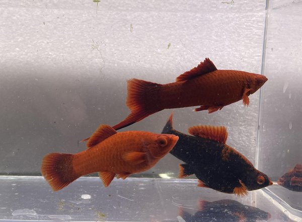 1 Ruby Red Male, 1 Ruby Red Female, 1 Red Alpha Female. Highly coveted fancy strain of swordtail originally developed in Germany. Breed Ruby Red males to Red Alpha females to produce the highest quality Red Alphas. Maintain a separate line of Ruby Reds to cross into your Red Alpha line.