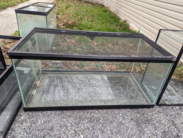40 gallon reptile tank with spot for slide on lid. Has regular screen lid. Cracked on side