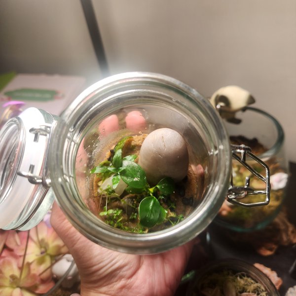 Small scaped terrarium with plants that can either be kept emmersed grown, or filled and submerged. This one has anubias petite, Monte Carlo, and a stem of s. Repens