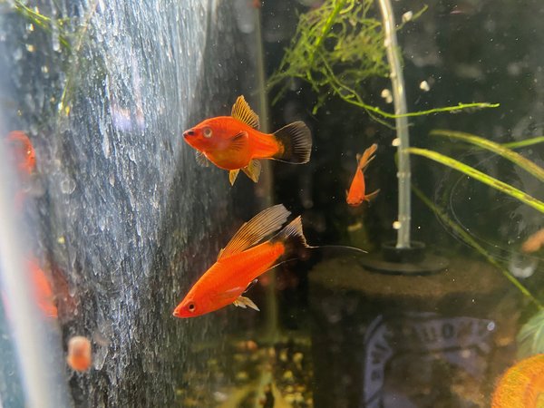 Through selective breeding breed for high fin, body size, and deep red with contrasting black tail. Males have sword and high Fin, female sometimes will have high fin.