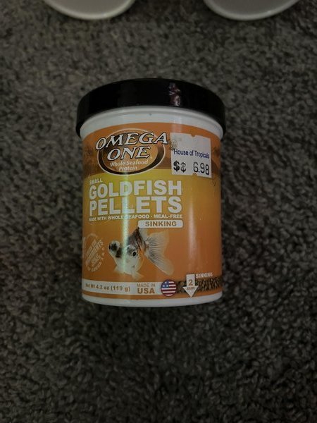 4.2oz container of Omega One small sinking goldfish pellets. Barely used.