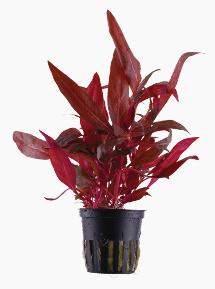 One potted Alternanthera reineckii 'Rosanervig' this is a beautiful red variegated stem plant. Fast growing. Likes highlight and does well with root tabs.